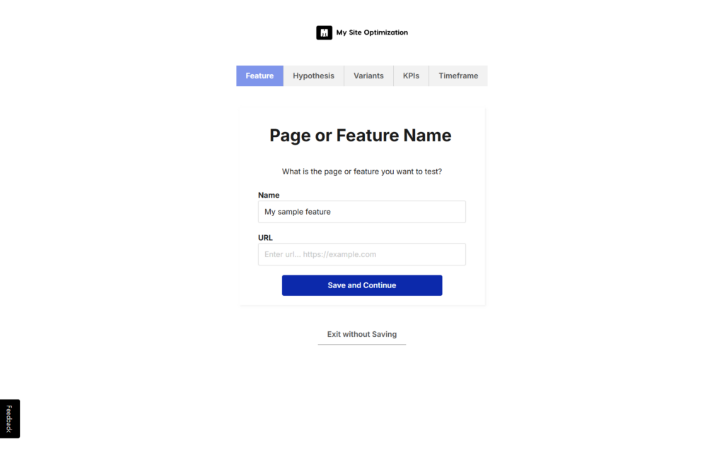 Enter the name and URL of your chosen feature.