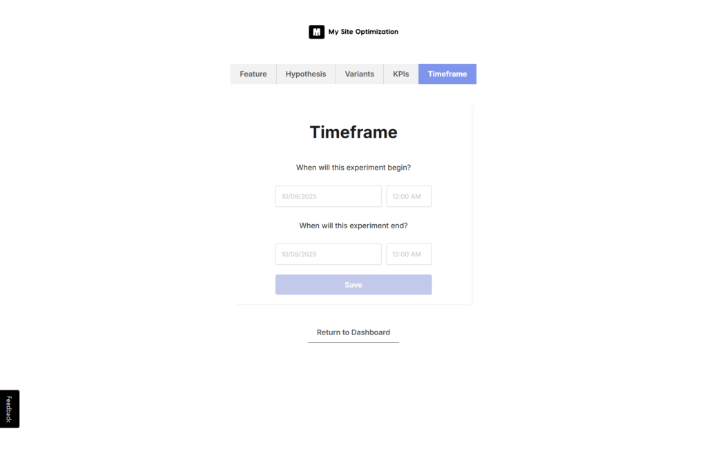 Finally, choose a start and end date for when you will be running this experiment.